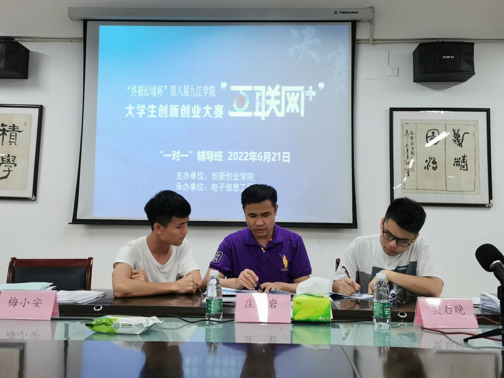 6月21日晚上7:00-9:30,专家们为参赛团队进行了“一对一”讲课和辅导。结合下午专家们在赛场上提出的问题,同学们经过团队研讨总结后不停地向专家们虚心请教。专家们耐心地为同学们传授项目计划书撰写、PPT设计、视频制作、路演和答问技巧等参赛事项。