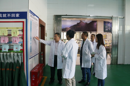 市局考察组一行先后参观了学生三食堂、米饭生产中心、净菜配送中心、仓储中心仓库,重点考察观摩了我校后勤洁厨亮灶系统、仓储信息化系统、米饭生产线、蔬菜清洗切配设备、自动打饭机、智能炒菜机器人等先进设施设备。参观过程中,市局考察组一行对我校采用的“6T”管理法表现出了极大的兴趣,双方后勤同仁就餐饮服务工作实际运营过程中的一些困难和问题进行了进一步的交流和沟通。