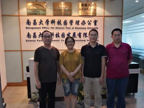南昌大学科技园邹江总经理、刘桂江副总经理热情接待了胡主任一行。邹江总经理详细介绍了南昌大学科技园的基本情况及机构设置、人员构成等情况,胡慧主任介绍了我校大学科技园的基本情况,双方在促进老师的科研成果转化、以大学科技园为平台加强大学生创新创业方面进行了深入探讨。