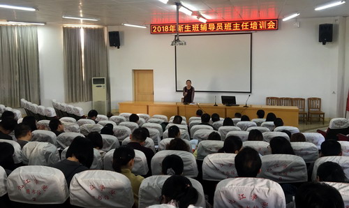 为学习贯彻党的十九大会议精神,贯彻落实中共中央国务院《关于加强和改进新形势下高校思想政治工作的意见》和全国、全省高校思想政治工作会议精神,落实立德树人根本任务,切实加强我校辅导员、班主任队伍建设,10月17日下午,学校在图书馆一楼报告厅举办了2018年新生班级辅导员、班主任培训会。来自全校19个二级学院近200名辅导员、班主任参加了培训。会议由学工部副部长范宇航主持。