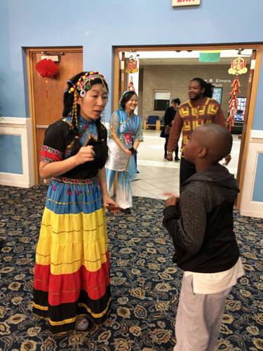 九名身着中国传统服装的美国学生,高举一条金黄色中国巨龙,雄赳赳气昂昂地环游校园一周后欢快入场,引起全体观众沸腾,掀开了表演序幕。曾经到访九江学院的黑曜石舞蹈团为来宾献上了一曲动感十足的开场舞。四名孔子学院的学员身着红色唐装,扭起了中国时下流行的《海草舞》,许多观众在台下跟着一起摇摆。几名身着中国少数民族服饰的孔子学院学员,伴着《爱我中华》的旋律,上演了一场别开生面的少数民族风情秀,缤纷的服饰在不同肤色的映衬下,显得格外绚丽多姿。著名旅美小提琴家犹娜女士为观众献奏了知名曲目《秘密花园》和中国民歌《茉莉花》。专程赶来祝贺的亚特兰大中国舞蹈社李凯妮女士带来了《苗家姑娘》和《扇舞丹青》,还与黑曜石舞蹈团共舞一曲,象征东西方文化交融。