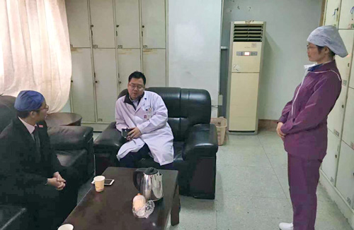 在西院手术室,神经外科主任赵浪平、西院手术室护士长张俐玲等对西院手术室目前现状及工作中遇到的问题进行了说明,并提出意见建议,刘副院长针对手术室用房、空间合理使用、硬件设施及后勤支持等方面问题进行了详细了解。