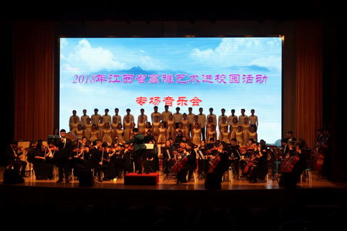 高雅艺术进校园活动旨在培育和弘扬社会主义核心价值观,提升校园文化品位,丰富校园文化生活,引领学生走进艺术、感受经典、陶冶情操、提高审美。我校艺术团根据省教育厅安排,11月21日由艺术学院副院长欧阳时来带领艺术学院艺术团140位师生赴景德镇文艺小学和景德镇陶瓷大学,开展2018年江西省高雅艺术进校园巡演活动。