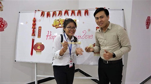 同学们自己动手布置会场:贴对联、贴福字、挂灯笼、挂拉花……亲身感受到了中国的节日民俗文化。汉语展示活动中,同学们举止从容,语言流畅,表达清晰,从行为礼仪到规范用语方面均表现出色,成绩卓越。