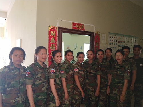 当晚,金边警备旅孔子课堂教室充满了柬埔寨士兵的欢声笑语,士兵学生们每天都有繁忙的工作和训练,但仍然坚持学习汉语,十分踊跃地参与到此次春节文化体验活动中来,活动场面热闹非凡。活动由警备旅中方负责人魏来老师宣布开始,第一项内容是介绍春节传统文化习俗。魏老师指着白板上提前写好的新年祝福语,一边带领大家读、写,一边解释意思,各位同学听得十分投入,积极和老师互动,并认真地记下了笔记。