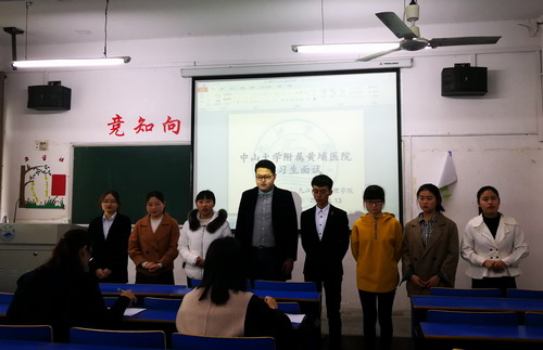 随后,中山大学附属第一医院东院老师向现场的同学们解释面试流程及注意事项。8名同学为一组依次进行面试,同学们需在半分钟内回答面试老师的问题,旨在考察学生的应变表达能力。面试老师对“为什么想选择本院实习、实习后有什么打算、对护理这个专业有何看法、最初为什么选择护理专业等”问题进行提问。同学们以简练的话阐述着自己的回答。8组同学依次完成面试,现场秩序有条不紊。