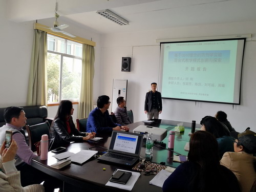 随后,何刚博士就2018年立项的省级教改课题《基于CDIO理念的药剂学实验混合式教学模式创新与探索》作开题报告,详细介绍了课题的立项依据、研究内容、研究方法、可行性、特色与创新点、进度安排和预期成果。在认真听取了课题负责人的开题汇报后,专家组与课题负责人围绕课题实施的科学性与可行性进行论证,专家组围绕研究中可能存在的困难和问题提出了具有针对性的改进意见和建议。