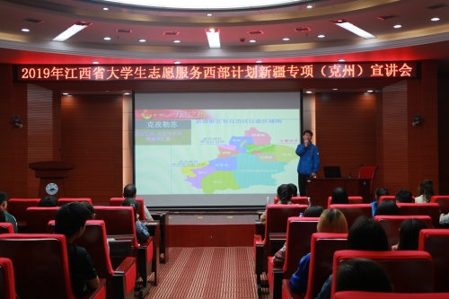 “到西部去,到基层去,到祖国和人民最需要的地方去”。4月17日下午,2019年江西省大学生志愿者服务西部计划新疆专项(克州)宣讲会在我校逸夫图书馆报告厅举行。新疆克州乌恰县团委书记阿不都瓦力·阿山拜克和4位西部计划服务新疆优秀志愿者与师生分享了他们服务新疆、奉献基层的心得感悟,校团委负责人以及200余名毕业生、青年志愿者代表参加了宣讲会。活动由校团委副书记任丹阳主持。