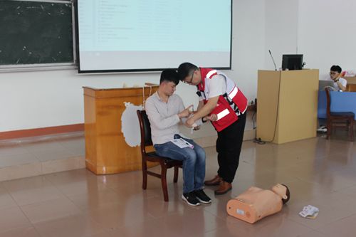 为进一步提高广大师生的应急救护的意识和能力,校医院邀请九江市红十字会急救培训专家对我校第三批学生卫生健康服务队员、学生代表进行应急救护培训,整个培训从4月10日开始到4月24日为止已顺利结束,考核合格的学员将获得红十字会救护员证。