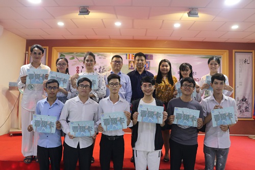 经过一整个下午的激烈角逐,此次比赛共12人获得晋级资格,进入柬埔寨赛区决赛,柬埔寨皇家科学院孔子学院两位院长及DHY负责人周丽云老师为晋级选手们颁发了晋级卡。选手们难掩喜悦之情,兴奋地合影留念。