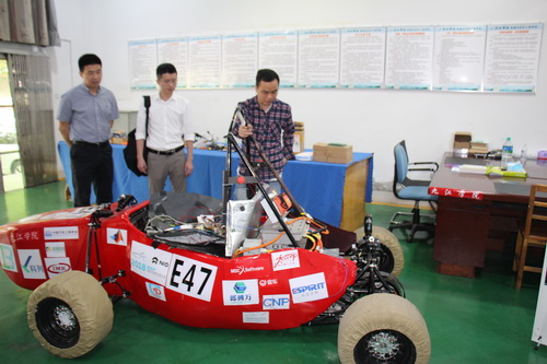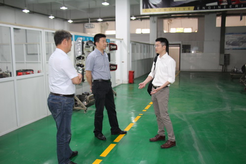 会后,一行人参观了机械与材料工程学院汽车实训基地。