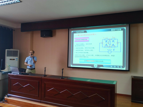 桂国祥老师不仅教学功底深厚,同时教学竞赛经验丰富,在国赛、省赛中多次获奖。为了进一步得到桂老师关于教学竞赛的指点,我校2018年教学竞赛获奖教师理学院张梅老师、电子学院谢新文老师,分别模拟教学竞赛教学阶段进行了20分钟的教学节段授课,桂国祥老师仔细聆听并逐一进行了点评,同时与在场教师进行了互动交流。