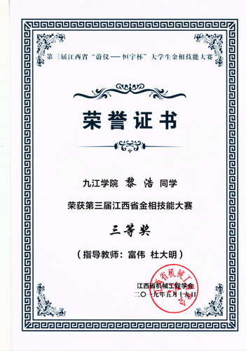 5月17日至19日,第三届“蔚仪—恒宇杯”江西省大学生金相技能大赛在南昌航空大学举行。经过校赛选拔、省赛的激烈争夺,我校参赛团队取得优异成绩,6名参赛同学全部获奖。其中2016级金属材料工程专业张上铨、全弘沂获一等奖,张浩、胡泽昊、刘咏慧和黎浩获三等奖,指导老师陈清宇、鞠银燕、宋士华和况菁获得优秀指导教师奖,我校还获得团体三等奖。