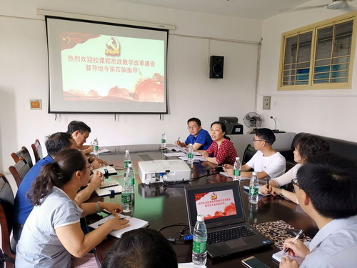 余敬谋副院长从课程思政改革建设的实施方案、教学改革开展示例、特色与亮点、存在问题等四个方面汇报了药学与生命科学学院课程思政试点开展的具体情况。本学期,学院通过组织老师申报,遴选了《药剂学》、《药物化学》、《生药学》、《果蔬加工工艺学》、《食品营养学》、《食品卫生学》、《分子生物学》、《药物分析》、《食品加工技术》、《临床药理学》、《新药申报》等11门课程作为学院课程思政课程建设试点课程,同时要求思政教育做到“五进”——进大纲、进授课计划、进教案PPT讲稿、进课堂、进头脑,并加强了对教学大纲、教学内容、教学方法、课堂教学等各教学环节的实施工作。交流会上特别是赵建国老师的《药物化学》课程,得到了督导组的一致好评。