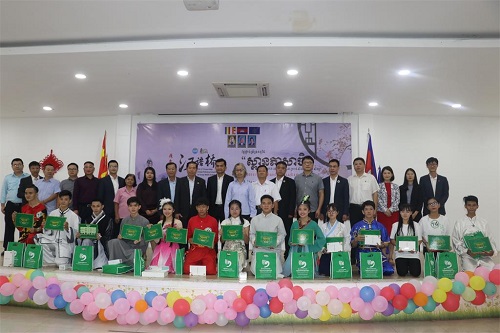 柬埔寨福建总商会、太子地产慈善基金会为此次比赛提供了丰厚的学习奖品,冯自权先生介绍了柬埔寨福建总商会、太子慈善基金会为柬埔寨发展以及汉语教学事业做出的贡献。
