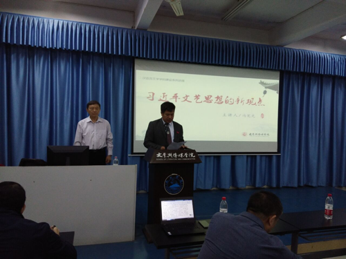 11月3日上午,四川大学冯宪光教授在文传学院文友楼205报告厅,为该院师生作了一场题为“习近平文艺思想新观点”的专题讲座。副校长陈春生主持报告会,文传学院党政领导、相关学科专业的教师和学生100余人到场聆听了报告。