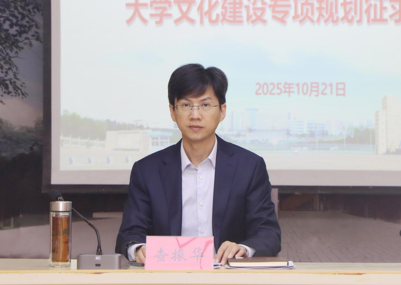 10月21日下午,学校在行政楼一号会议室召开“十五五”党建与思想政治建设专项规划、大学文化建设专项规划征求意见会。党委委员、副校长查振华、王殿元出席会议并讲话。党委委员、宣传部部长刘平,党政办、离退休人员工作处、人事处、学工部等部门负责人,以及各二级学院党委书记或副书记参加了会议。党委委员、组织部部长杨杰主持会议。